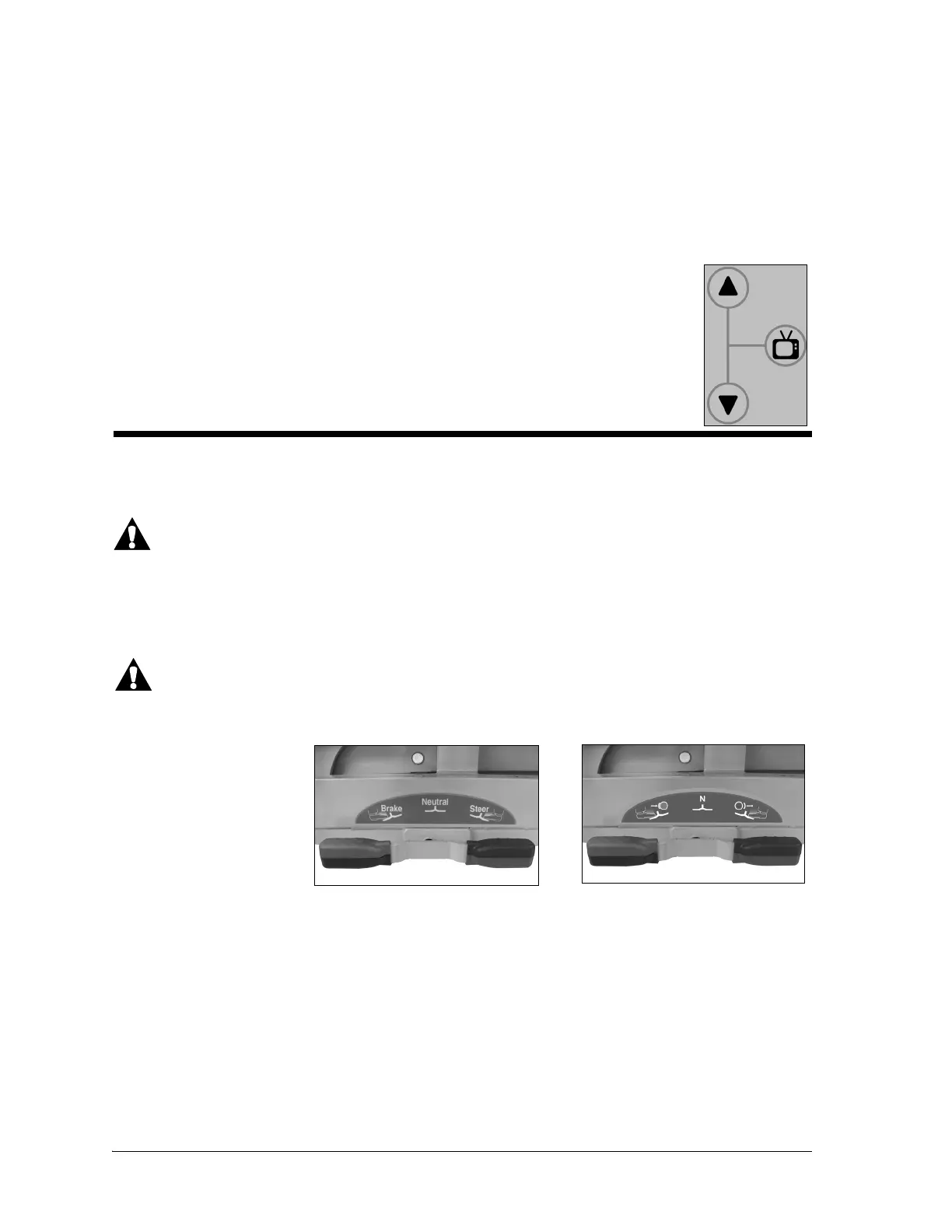 • Warning—Keep feet out from under the brake/steer pedal when you engage it.