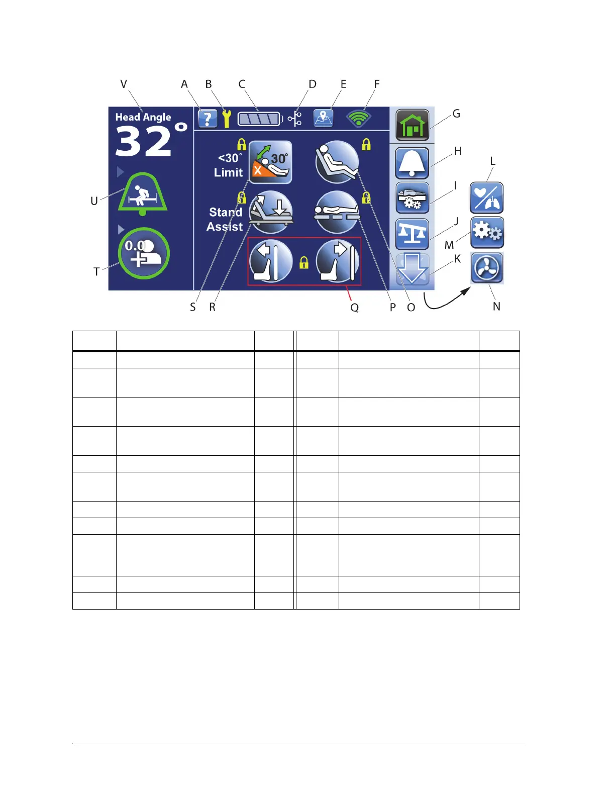 C Bed battery charge indicator 14 N MCM control (only on beds