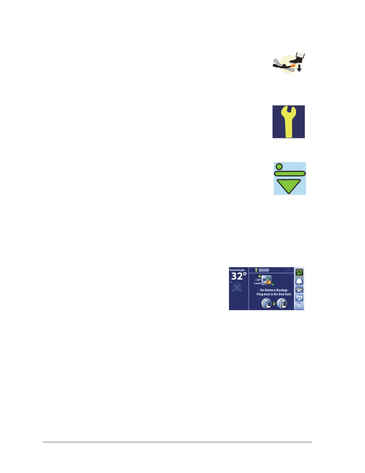 The bed has an automatic battery backup feature. When AC power is not being supplied to the bed