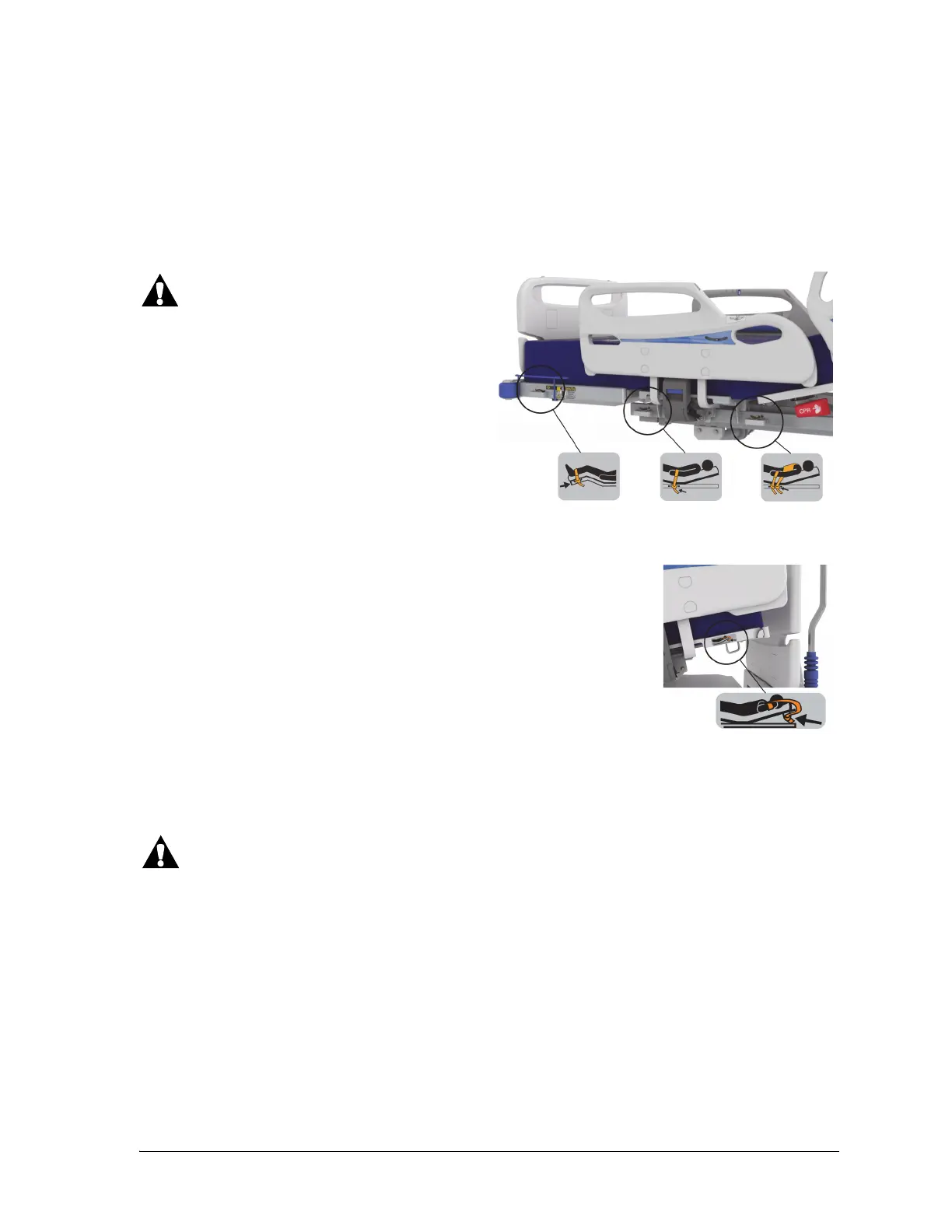 • Caution—Use caution when you raise or lower a siderail when a drainage device is present.