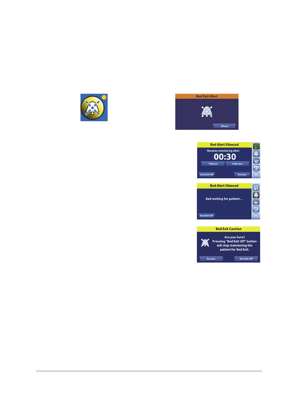 Exit Alert. Do not leave the patient unattended until Resume is pressed and the Bed Exit