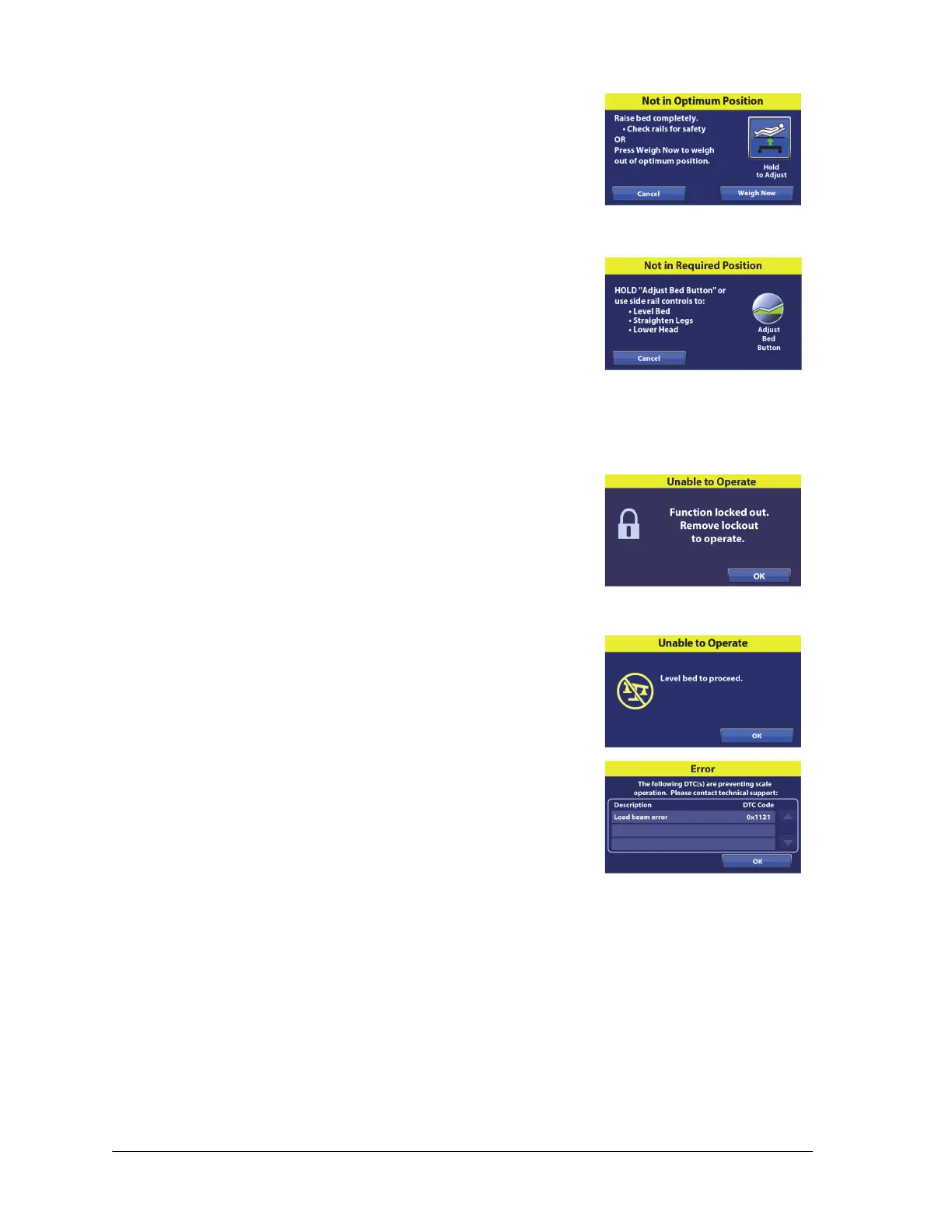 bed is not in the optimum position to weigh. Press the Hold to Adjust