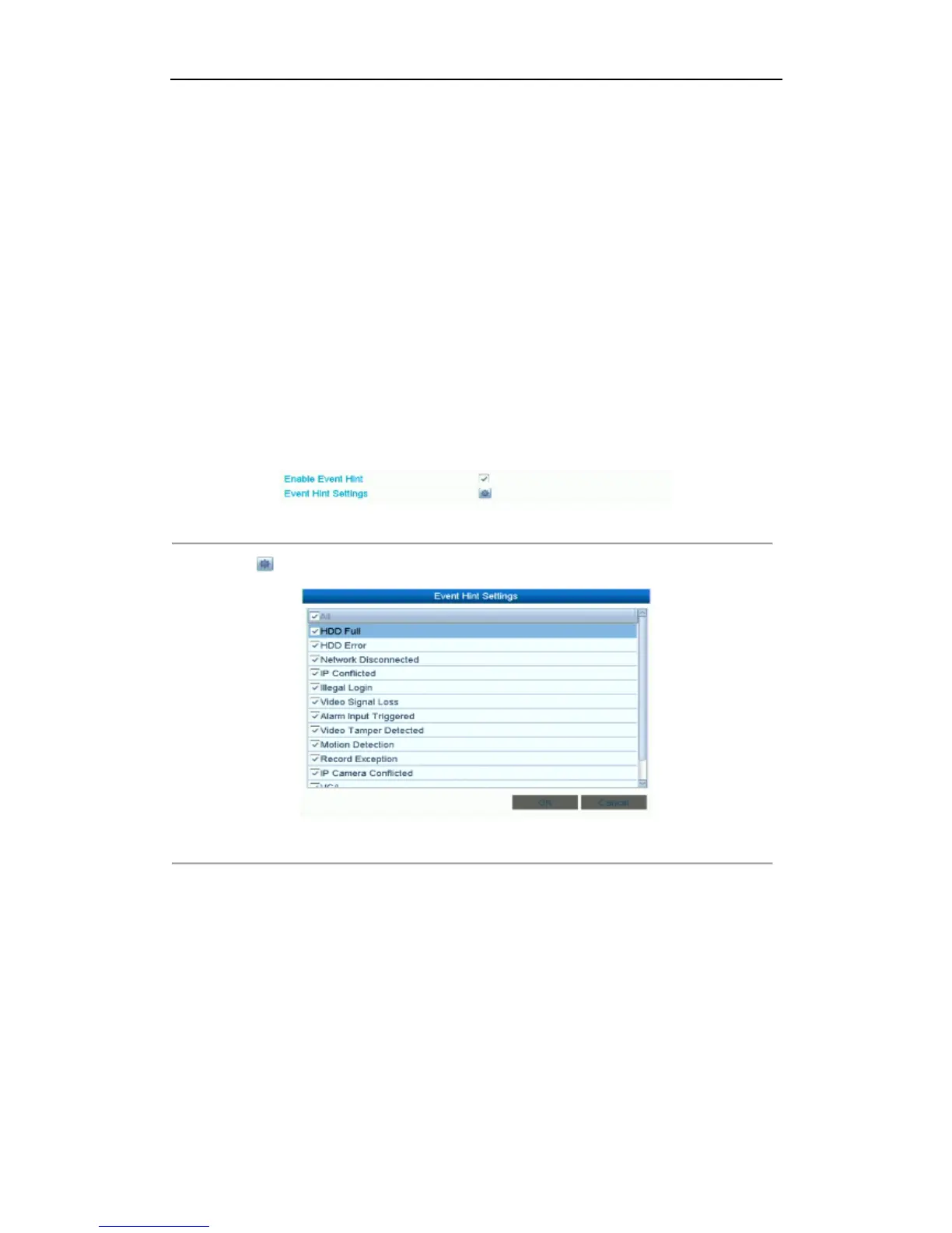 When an event or exception happens, a hint can be displayed on the lower-left corner of live view image. And you