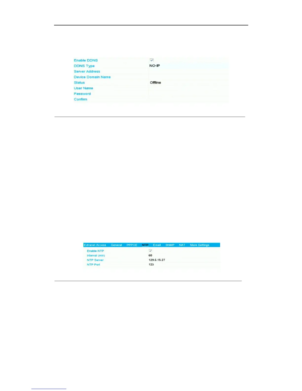 • Interval: Time interval between the two synchronizing actions with NTP server. The unit is minute.