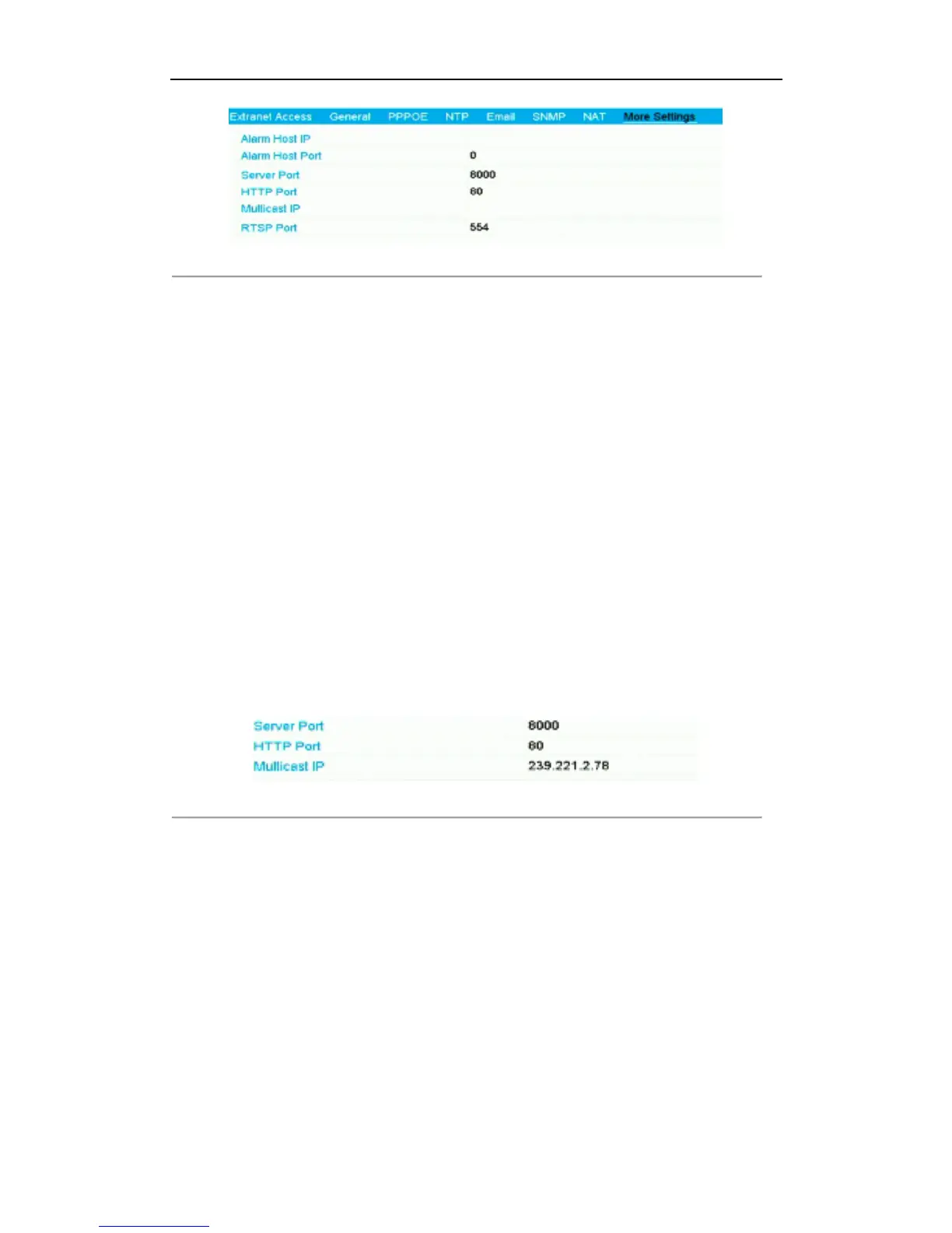 The multicast can be configured to realize live view for more than 128 connections through network for the device.