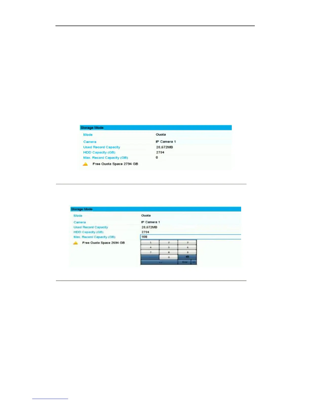 4. Enter the storage capacity in the text fields of Max. Record Capacity (GB), as shown in Figure 9. 8.