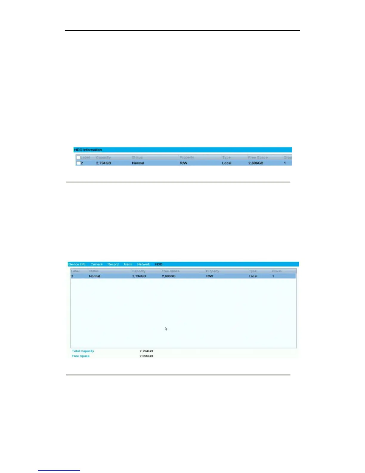 2. Click the HDD tab to view the status of each HDD displayed on the list, as shown below.