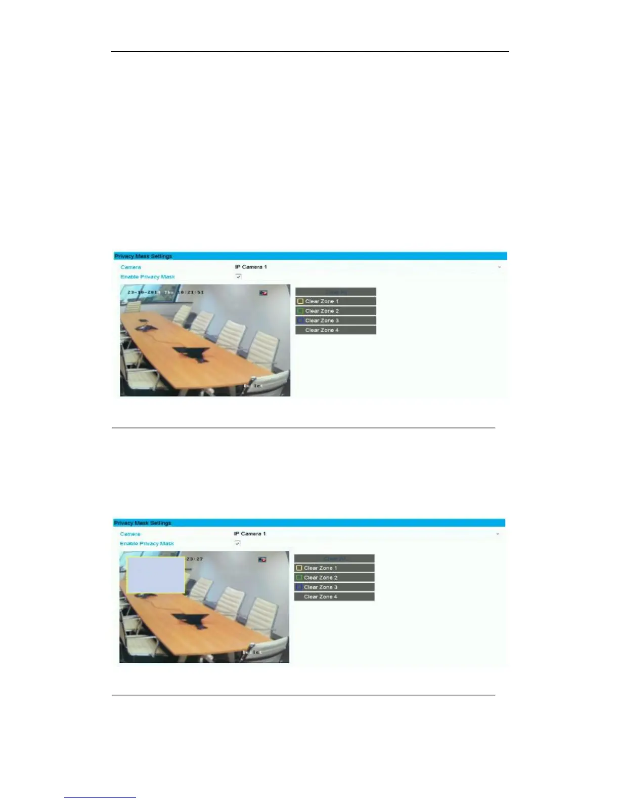 5. The configured privacy mask zones on the window can be cleared by clicking the corresponding Clear