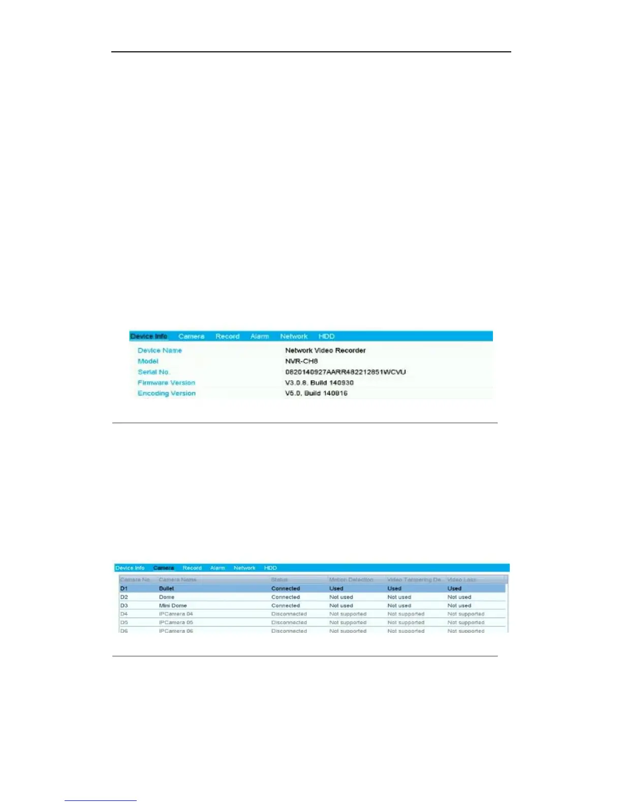 2. Click the Device Info tab to enter the Device Information menu to view the device name, model, serial No. ,