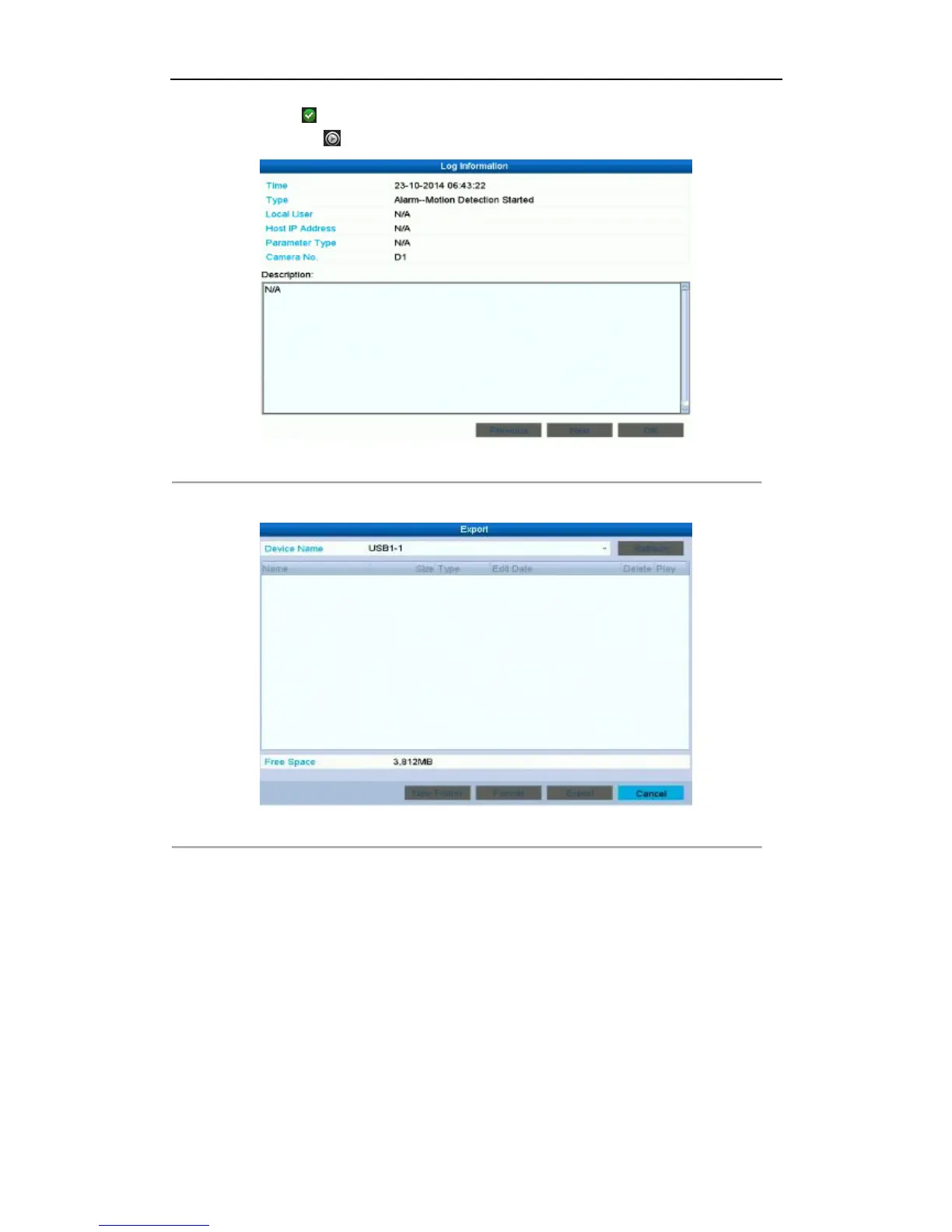 6. If you want to export the log files, click the Export button to enter the Export menu, as shown below.