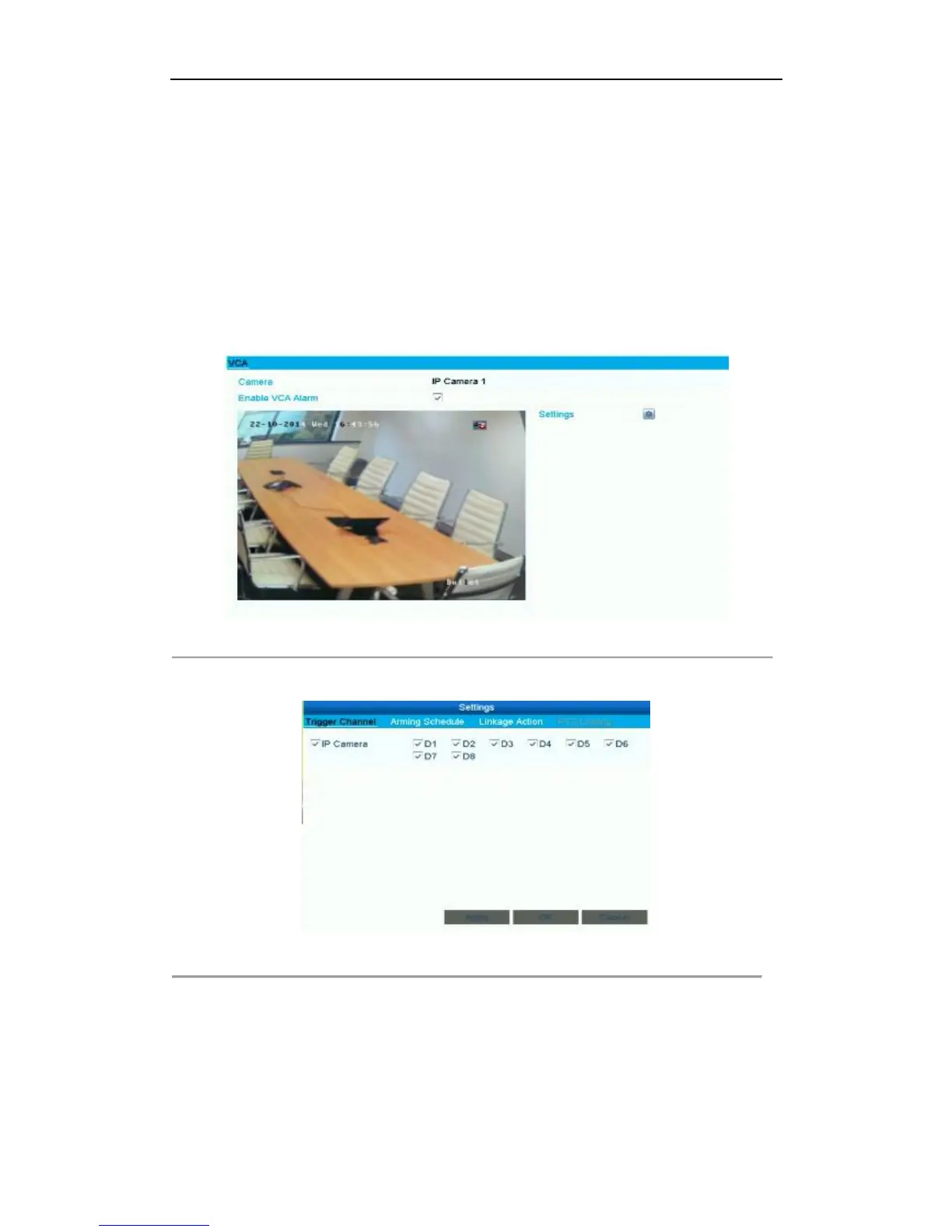 2. Check the Enable VCA Alarm checkbox and click Settings button to set up its alarm response actions.