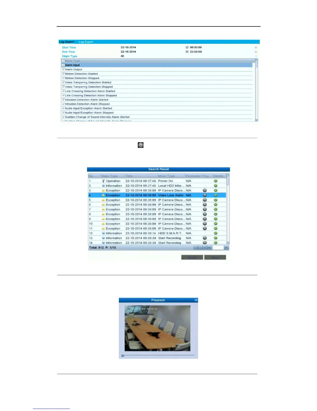 If there is no record file at the time point of the log, the message box “No result found” will pop up.