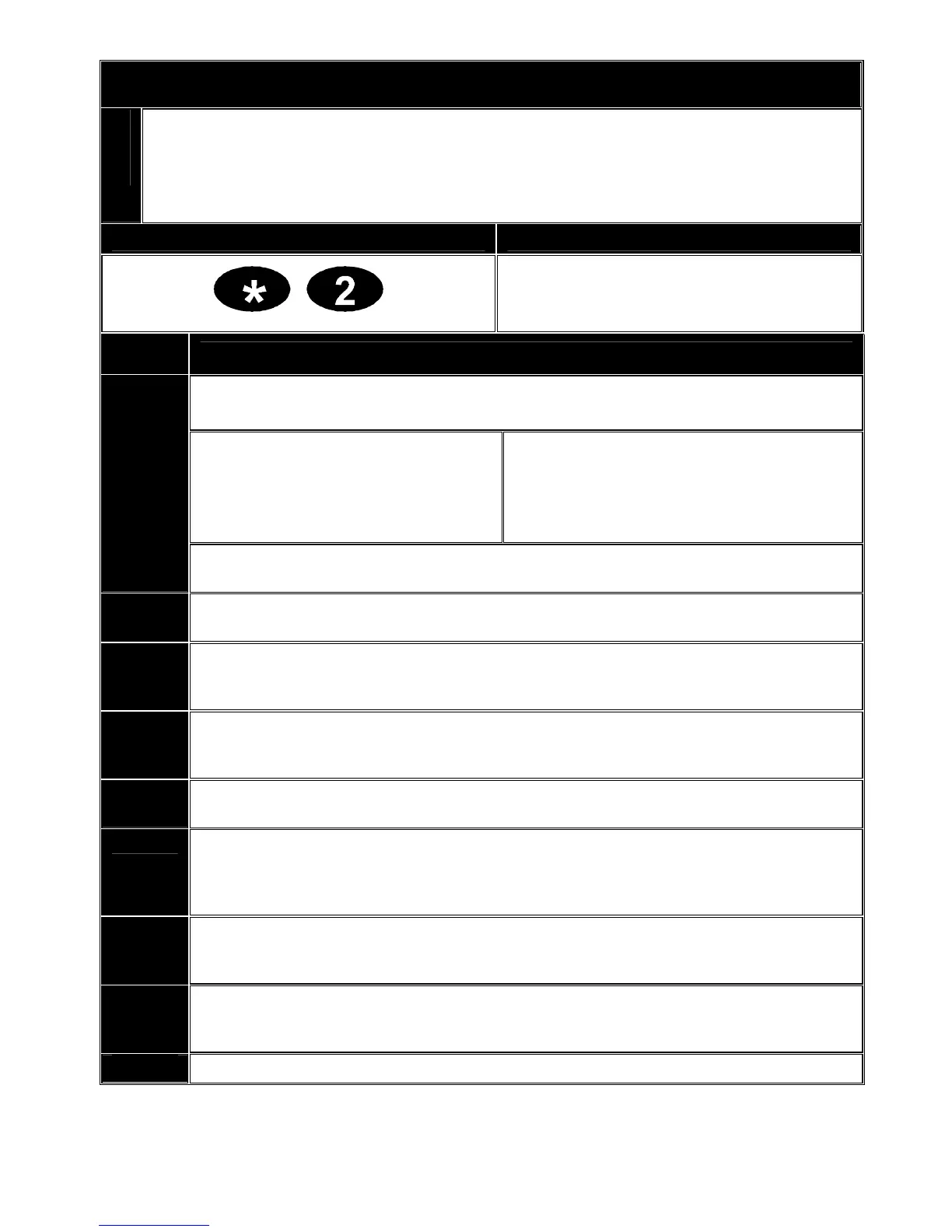1. Enter keys [*] [2] and use the table