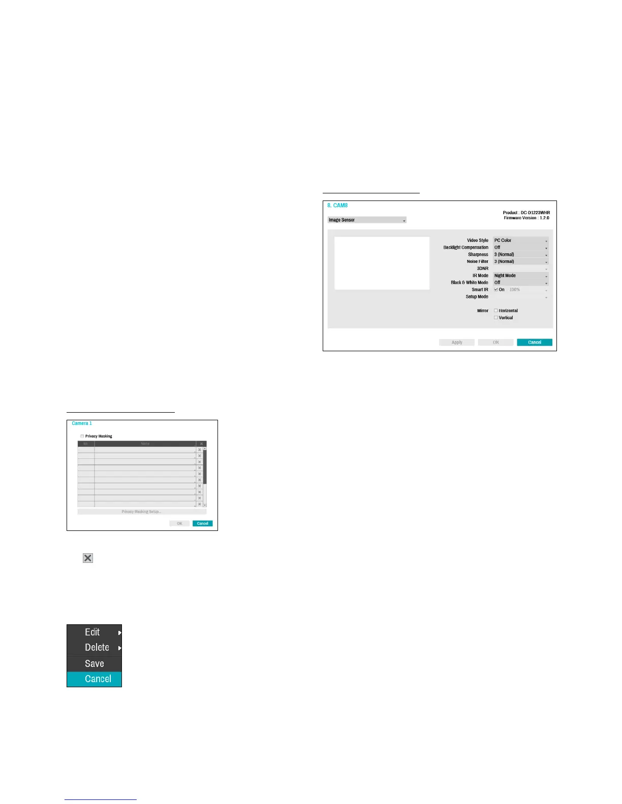 • Cancel: Exit the privacy masking area options screen