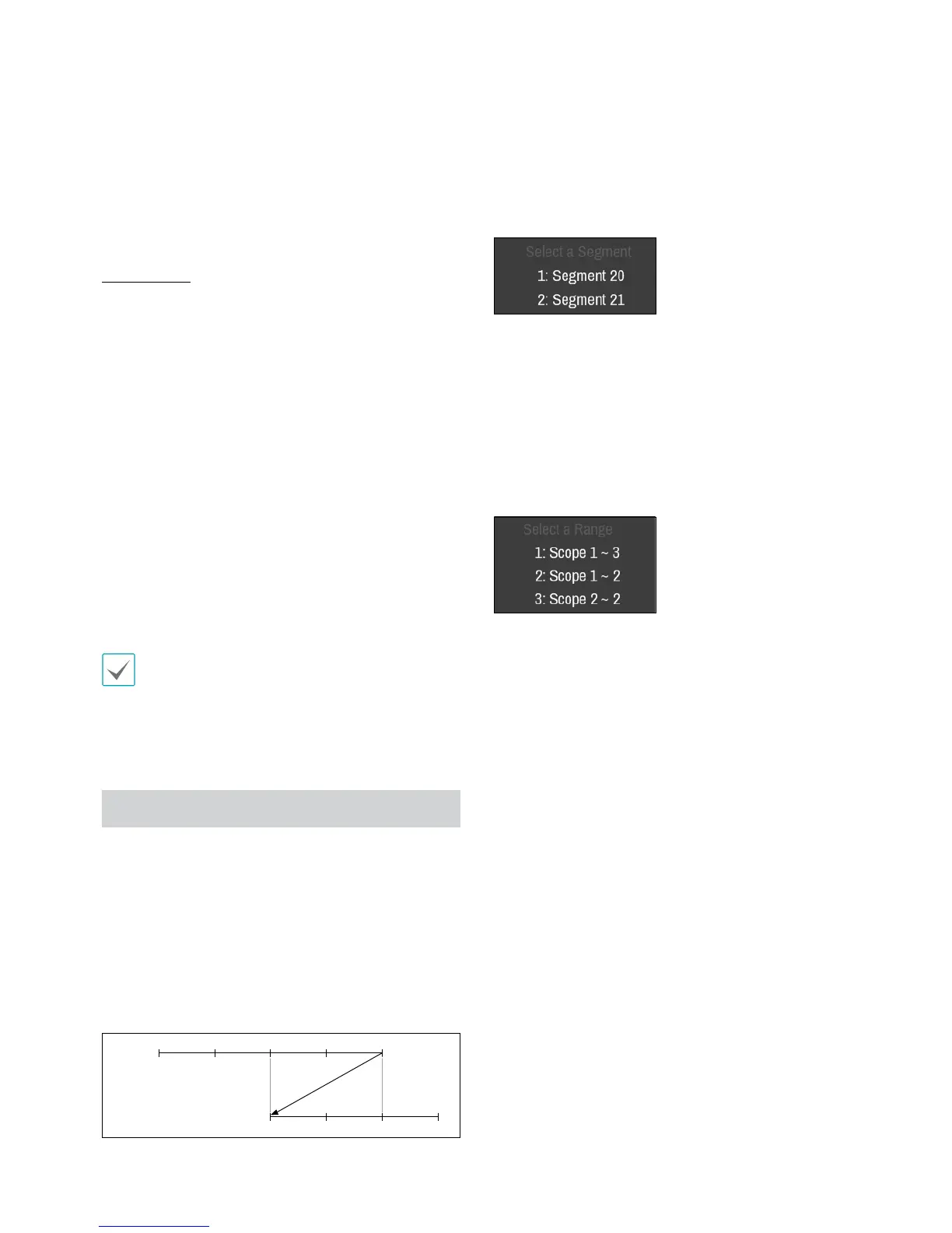 • 4 o'clock in segment 1 to 5 o'clock in segment 2
