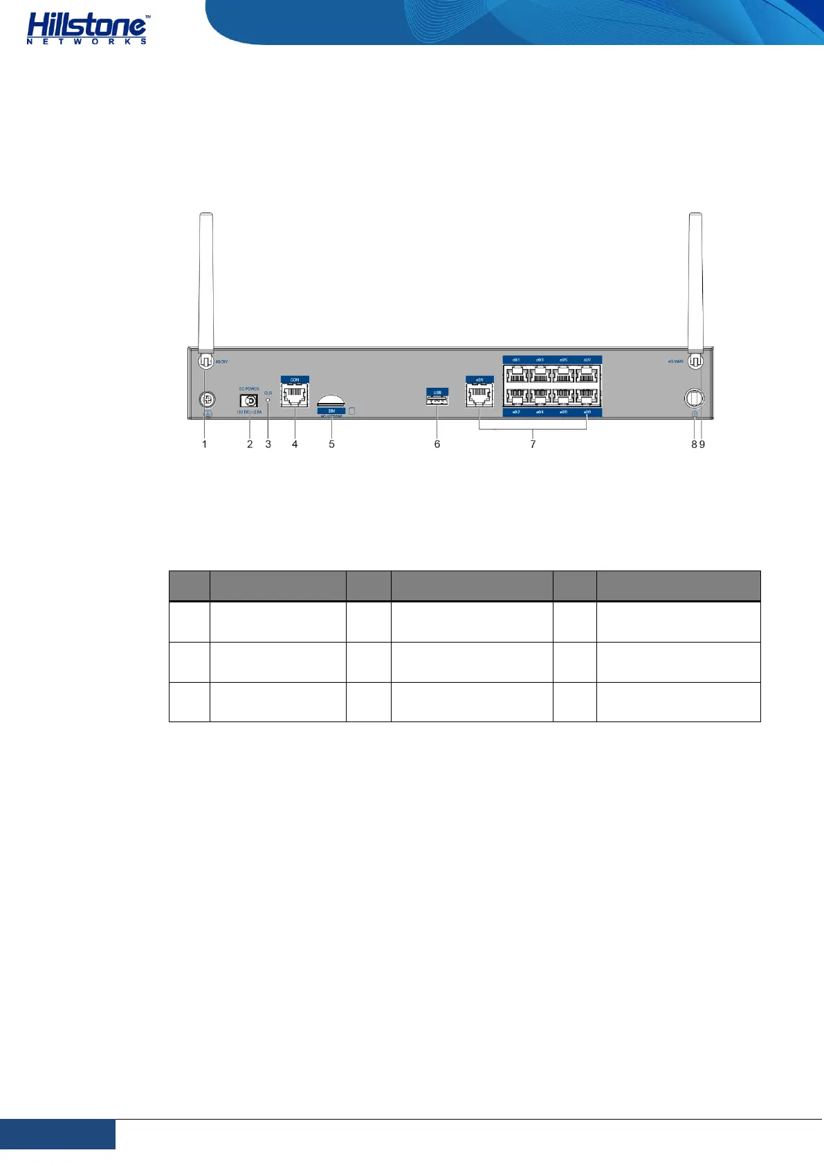 Table 1-17: Back Panel Description of SG-6000-E1100 (4G version)