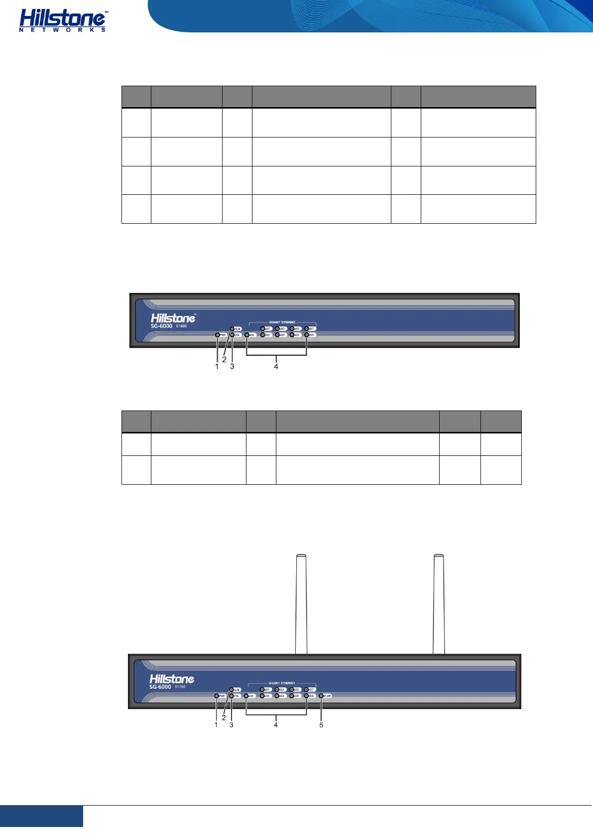Hillstone SG-6000-E1700 - Figure 1-10: Front Panel of SG-6000-E1100 (WLAN Version); Figure 1-9: SG-6000-E1600 Front Panel; List of Tables; Table 1-8: SG-6000-E1700 Front Panel Description
