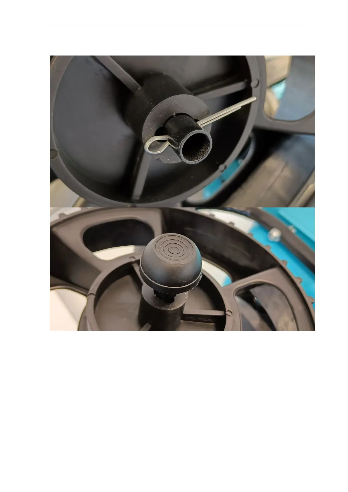 Deslice las ruedas sobre los ejes y asegúrelas con chavetas (dóblelas una vez que estén en su lugar), luego