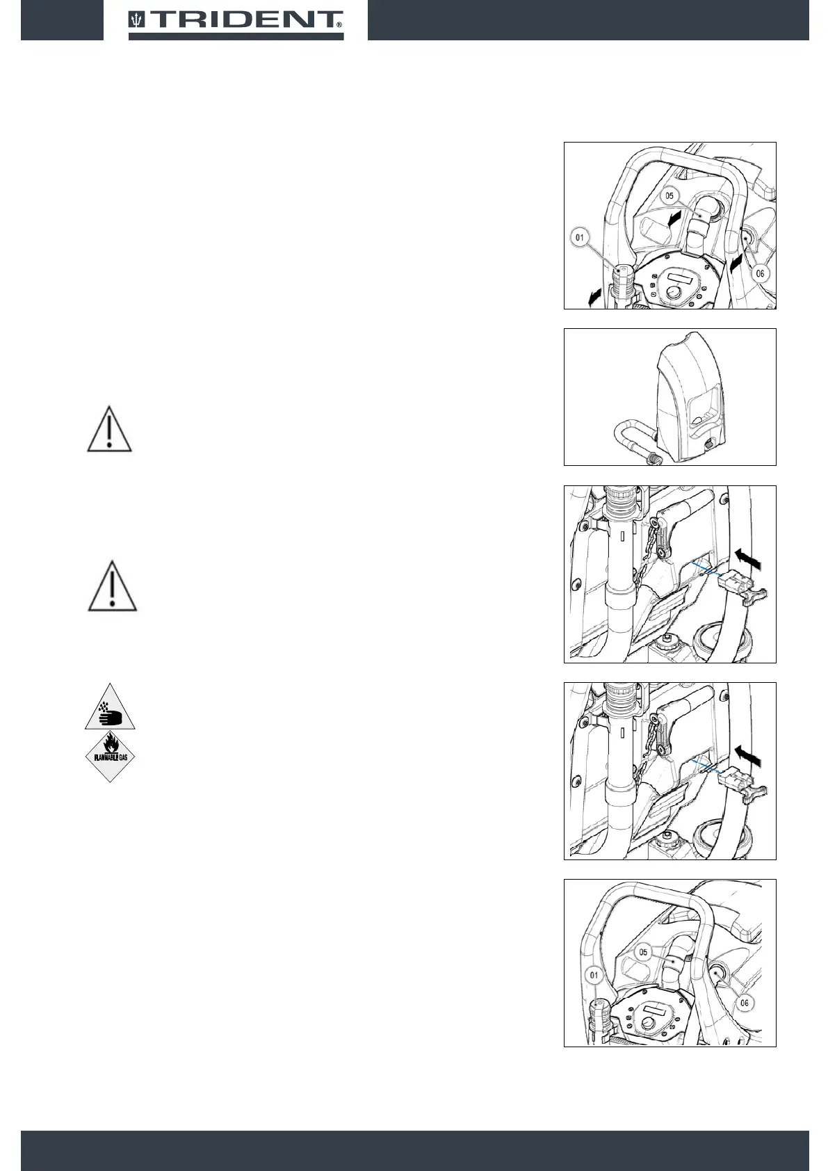 20. Insert the squeegee vacuum hose (06) into the hole at the rear of the recovery tank.