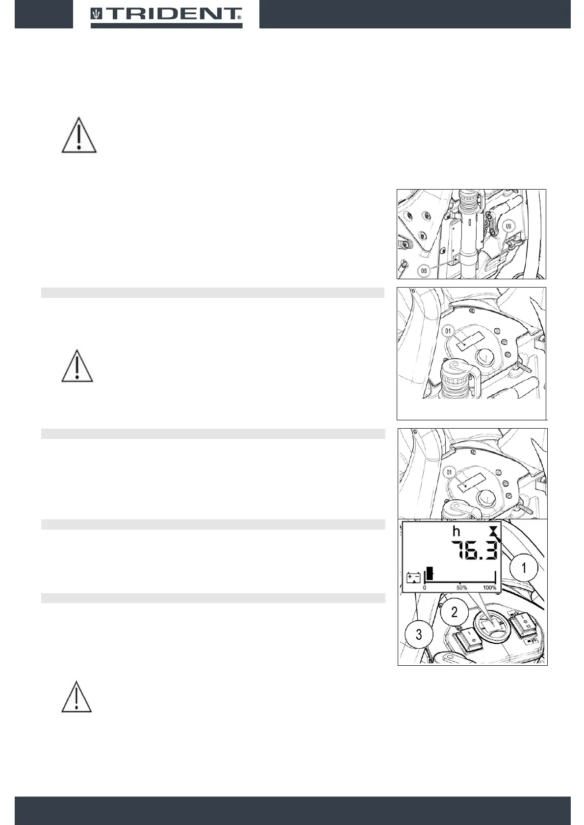 On the instrument panel of the machine there is a monitor (1) indicating (amongst other things) the battery
