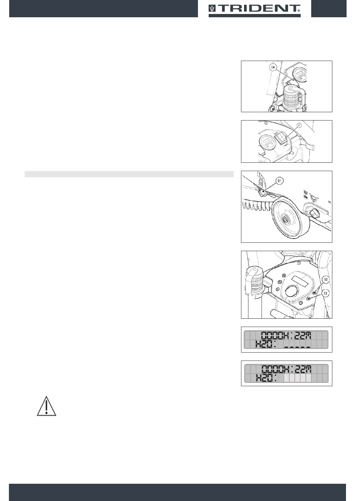 in order to increase the flow of detergent supplied to the brush; press the button (03) to decrease the