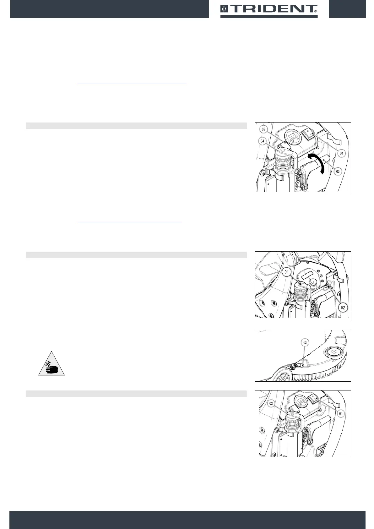 3. Raise the squeegee body from the ground by means of the lever (03) on the back of the machine.