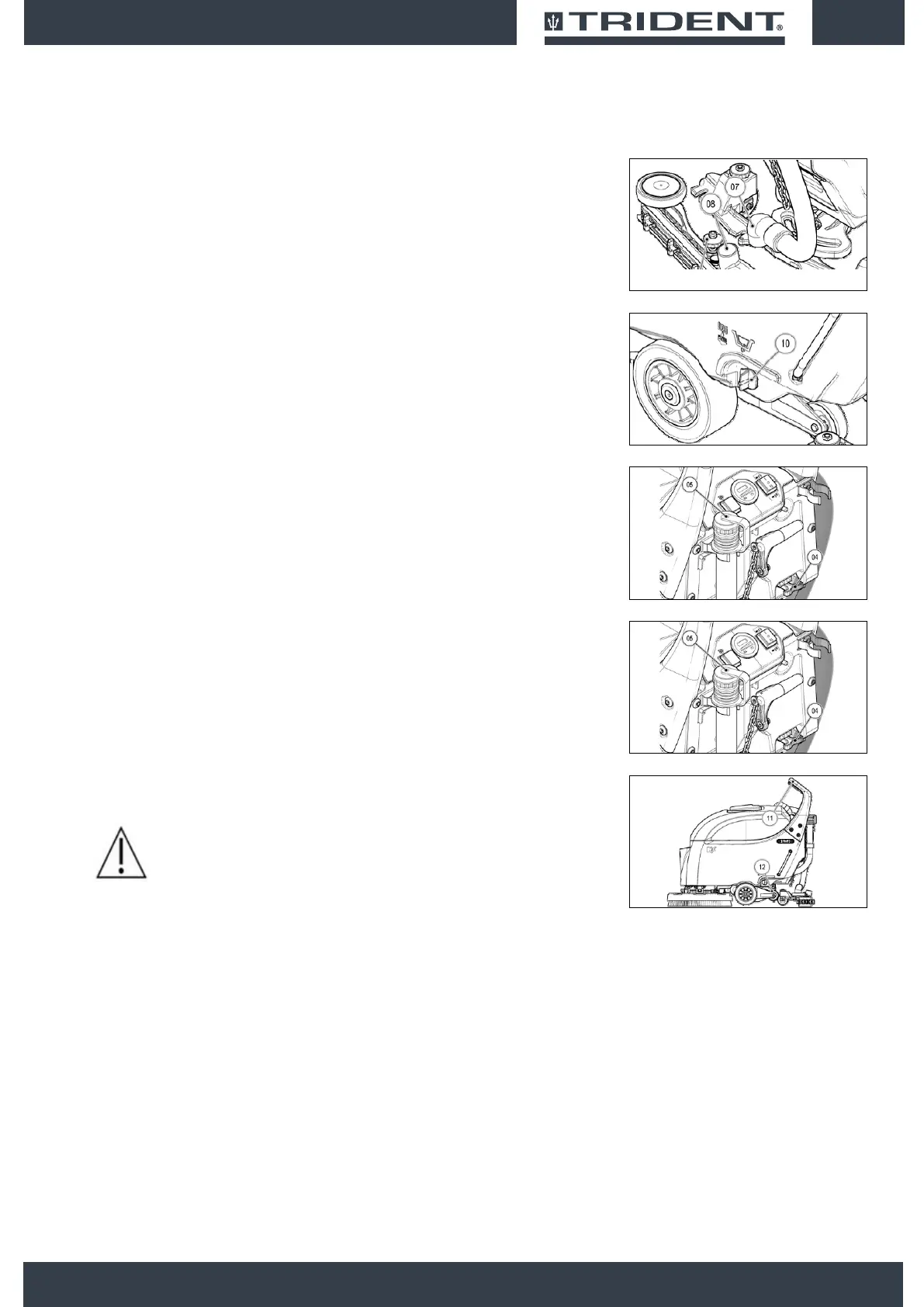 13. If necessary to empty the solution tank, unscrew the tap-filter (10) on the left-hand side of the machine,