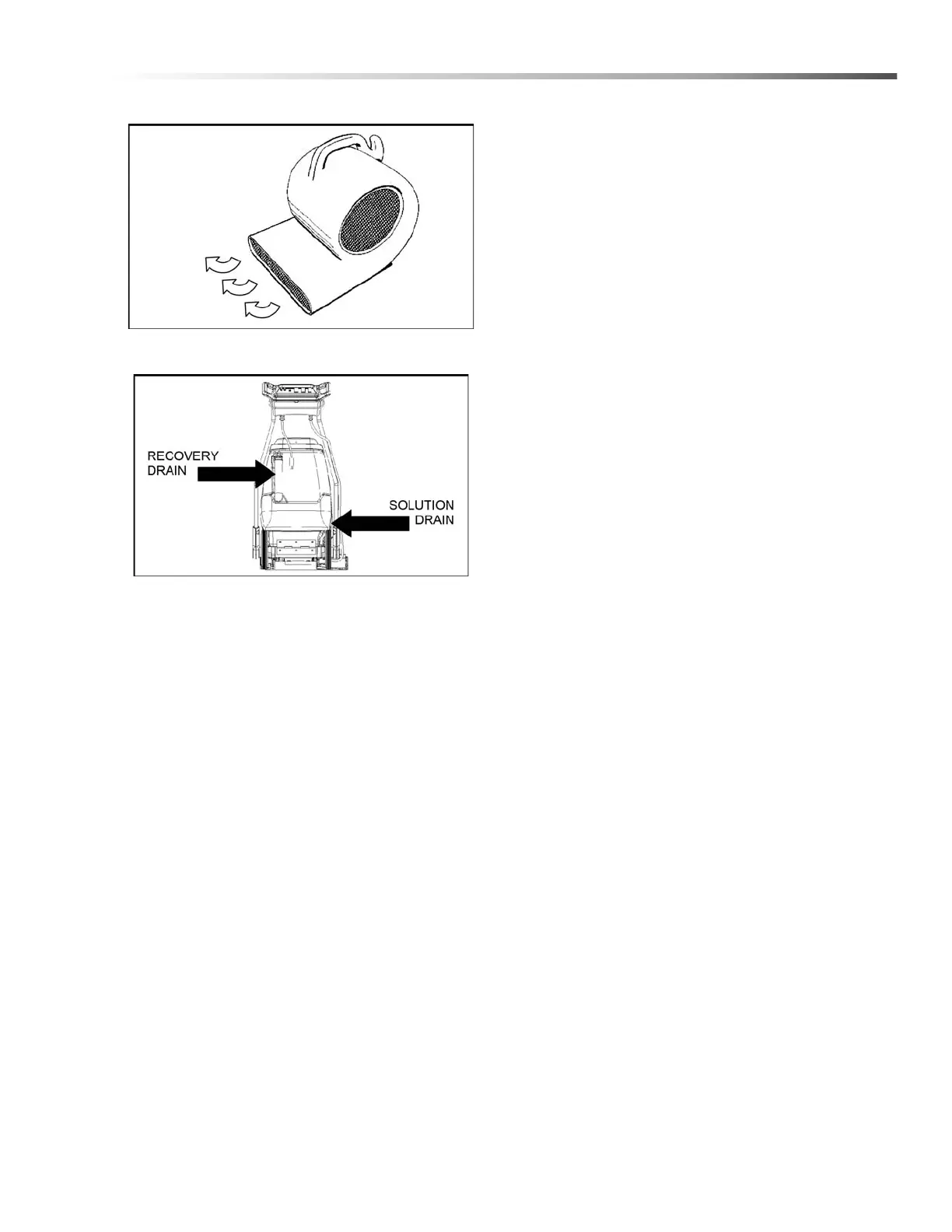 9. Empty recovery tank by releasing dump hose. Use