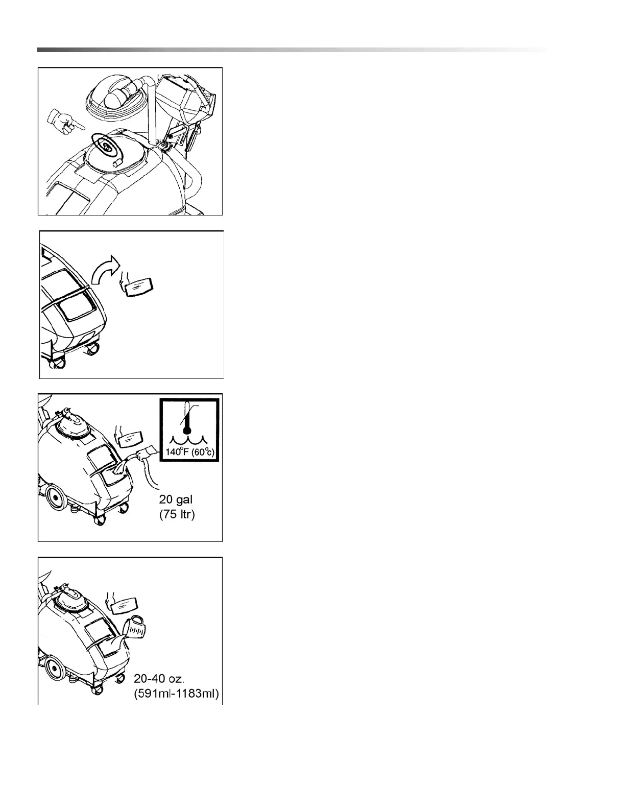 3. Fill the solution tank with 20 gallons (75 ltr) of