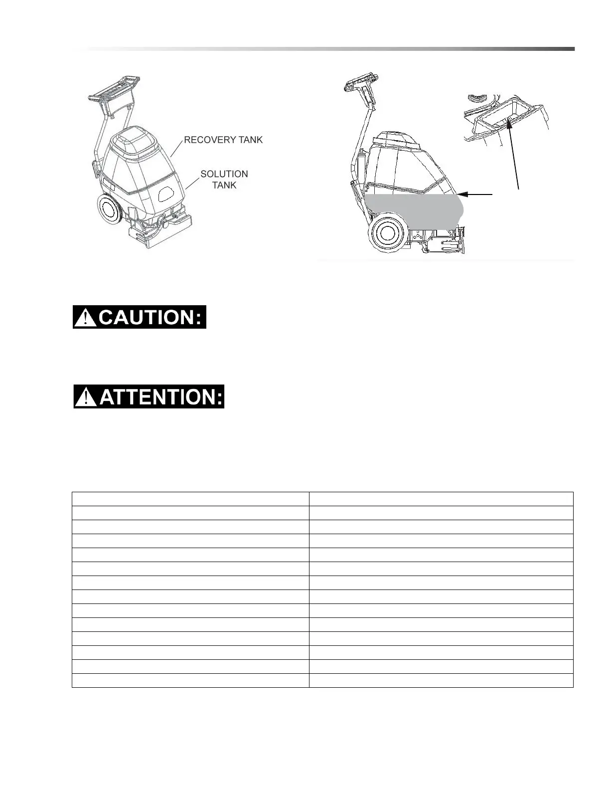 Do not allow water to spill into vacuum motor inlet. Dry spillage from top of solution tank before replacing