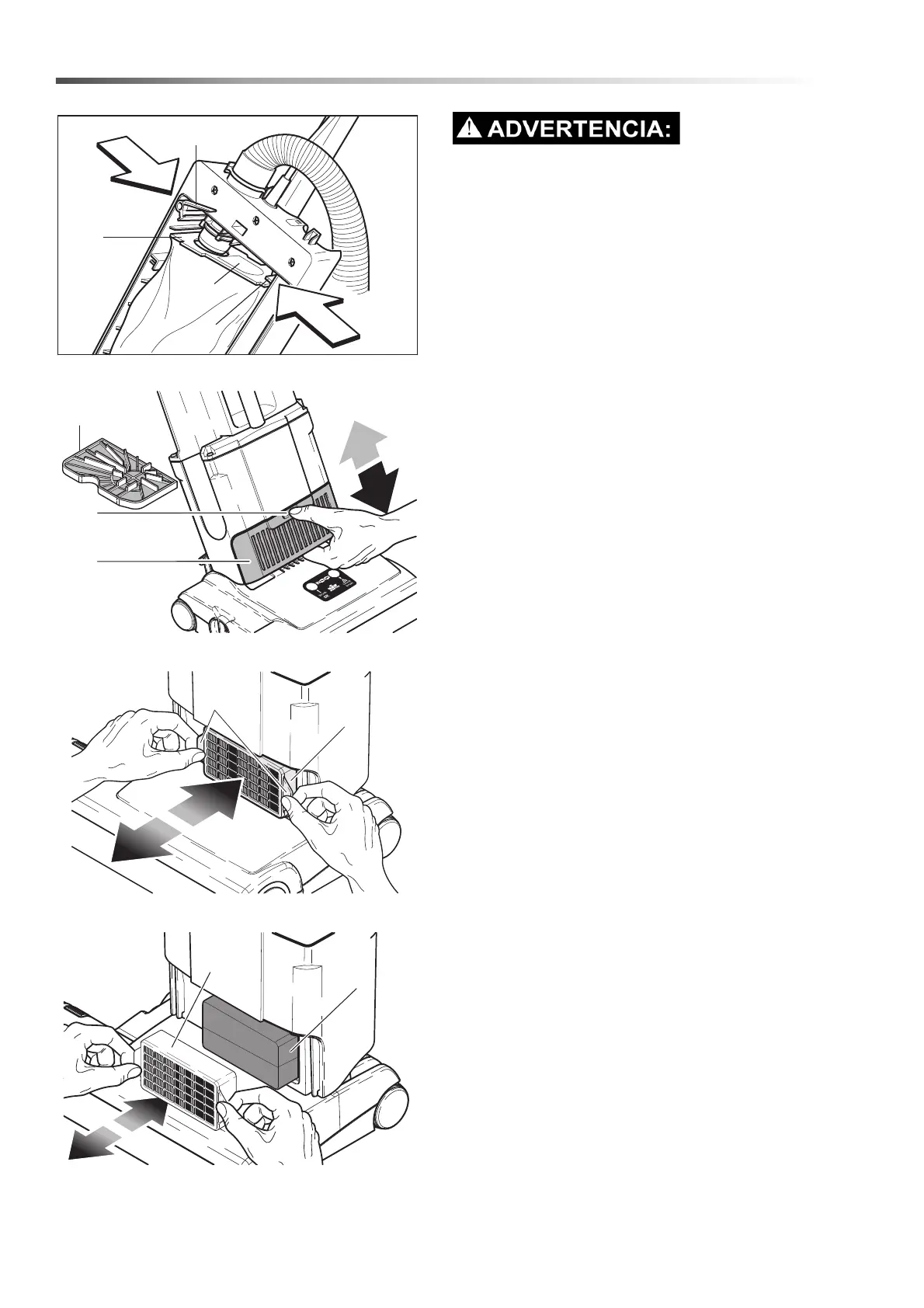 Para cambiar la bolsa de polvo: Retire la cubierta