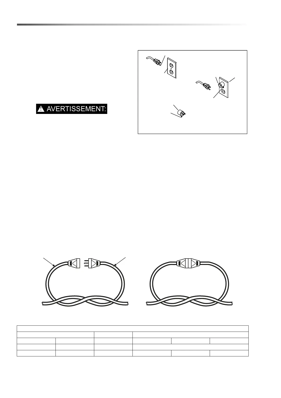 d’électrocution. Vérifier avec un électricien ou un membre
