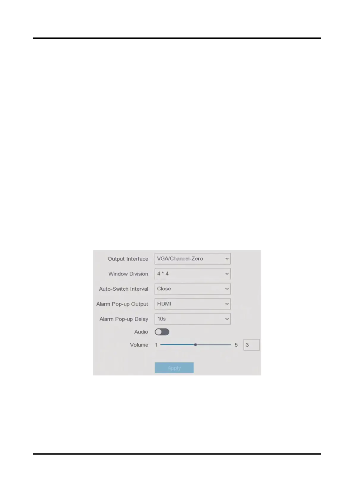 You can configure the output interface, mute or turning on the audio, event output interface, etc.