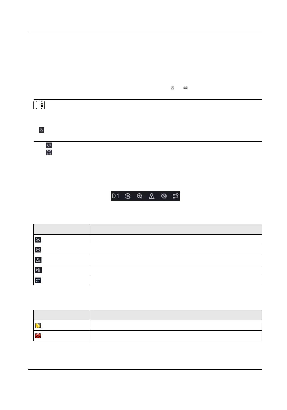 In the live view interface, there are icons at the upper-right corner of the screen for each