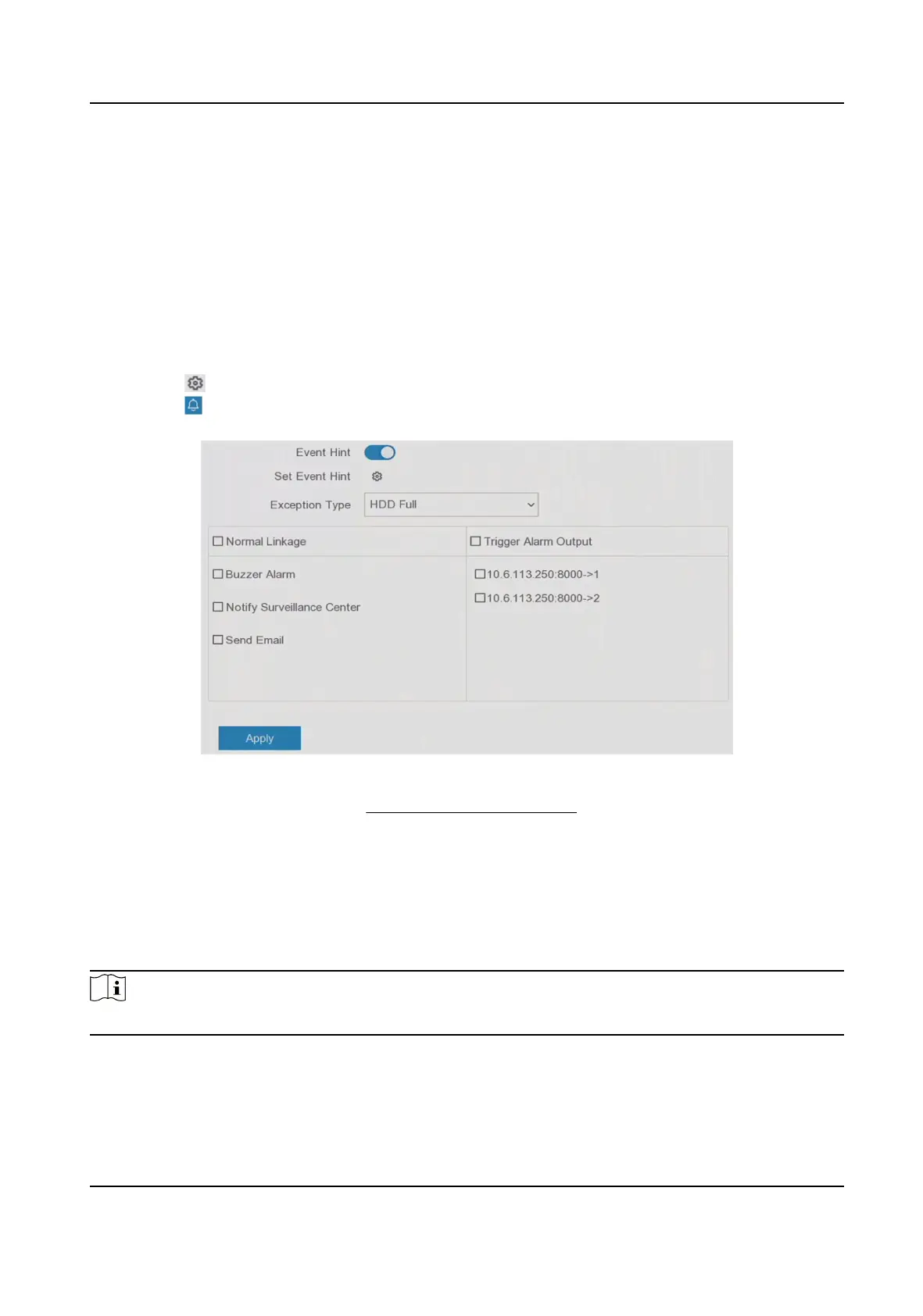2. Congure event hint. When the set events occur, you will receive hints in alarm center.