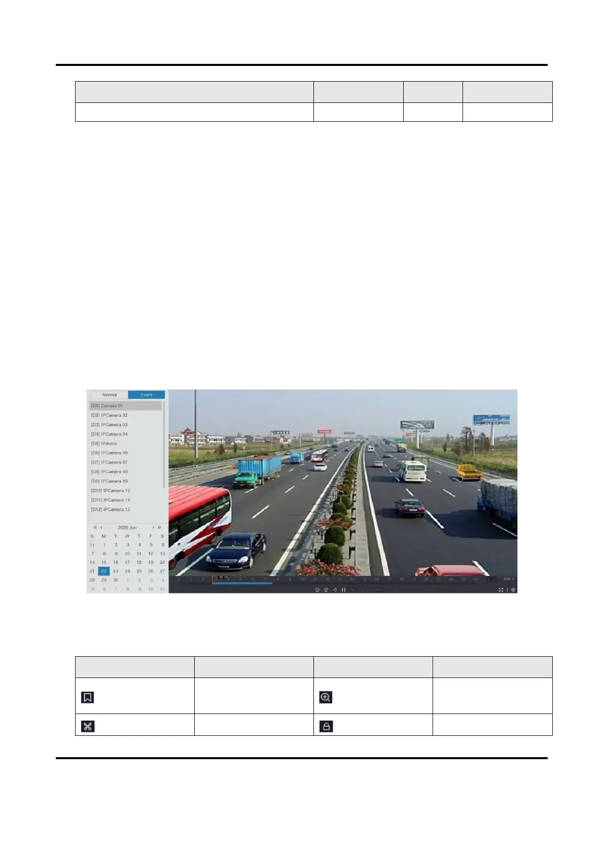 When you select the event playback mode, the system will analyze and mark videos that contain