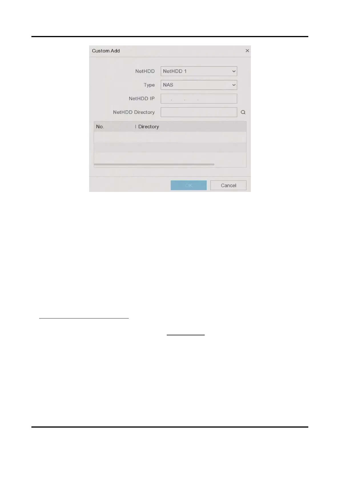 7. Select NAS disk from the list, or manually enter the directory in NetHDD Directory.