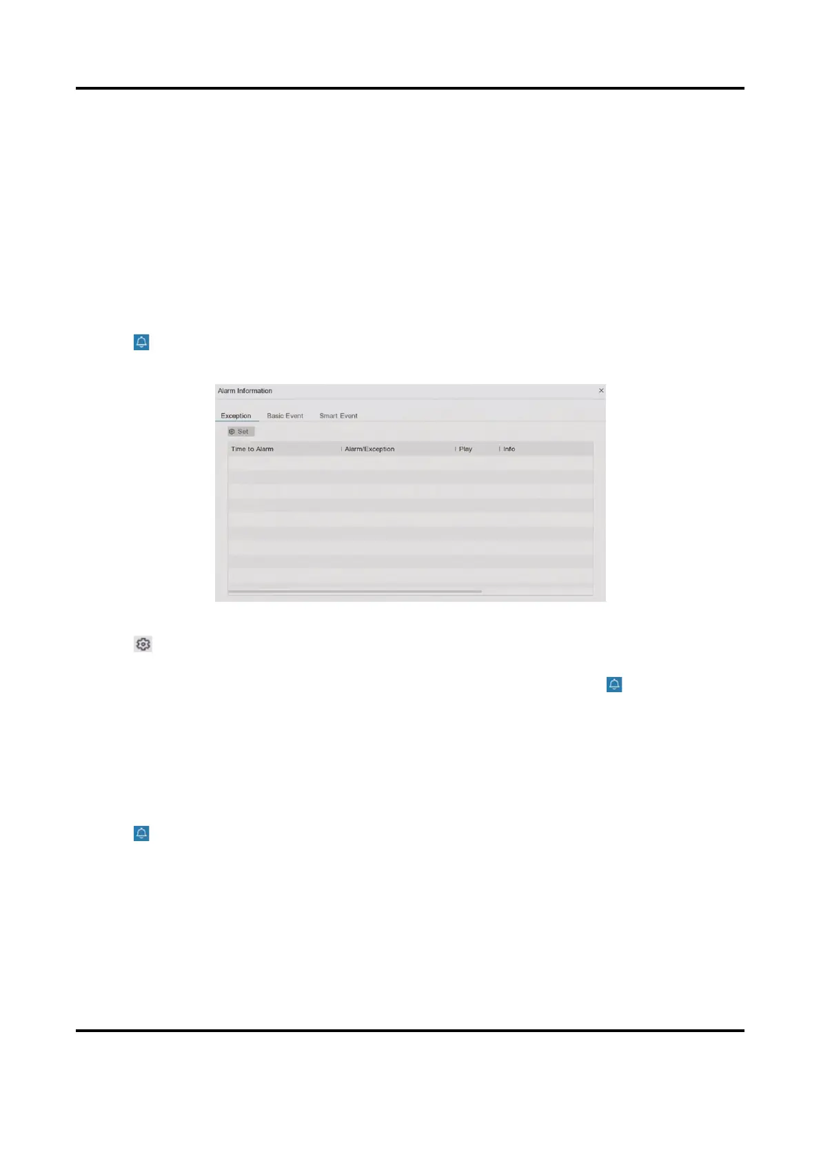 When the selected events occur, the alarm information will be displayed in (locating at the