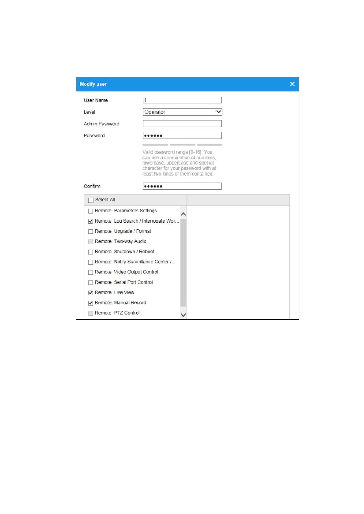 5. Click OK to finish the user modification.