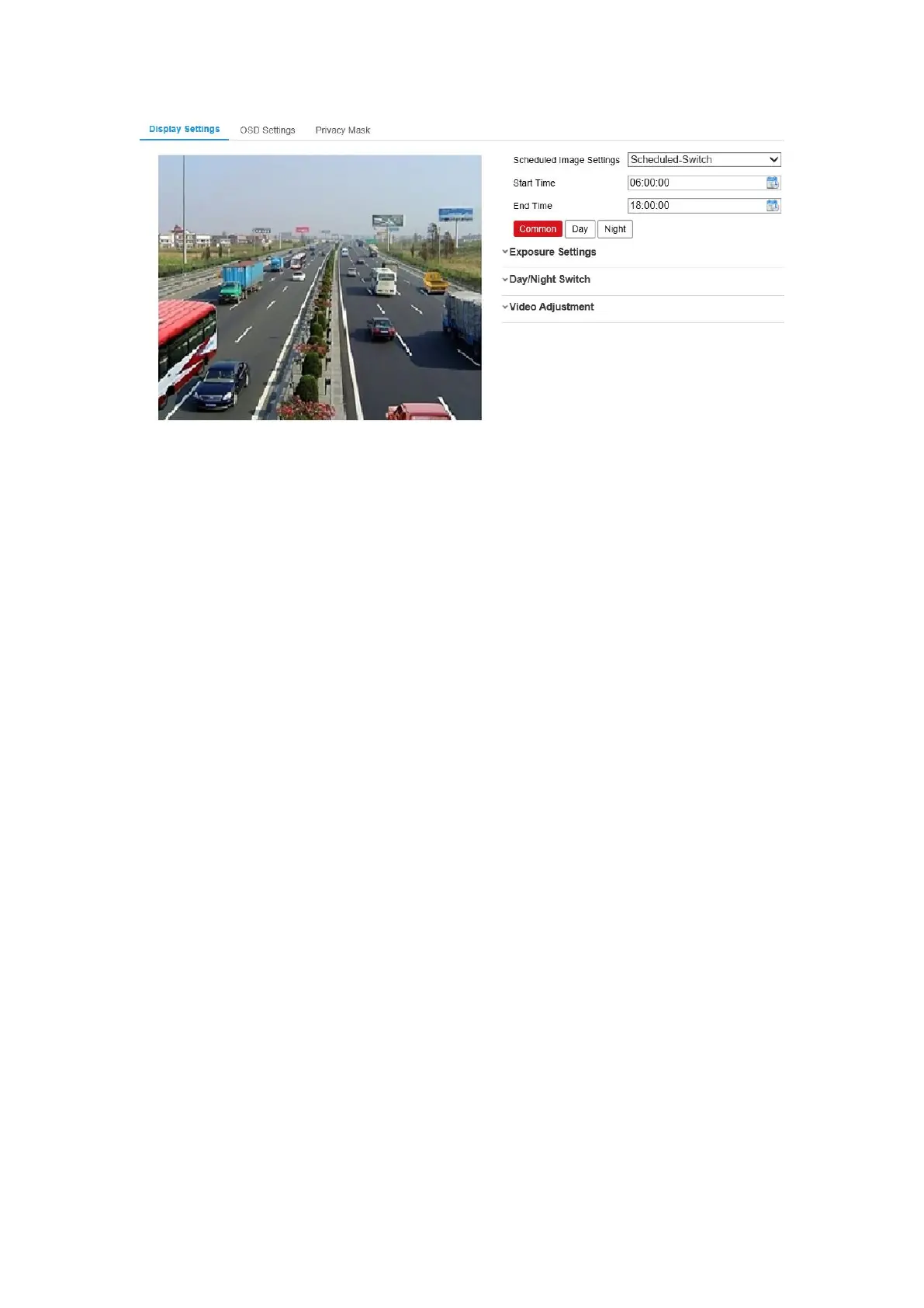 3. Click Day tab to configure the parameters applicable for day mode.