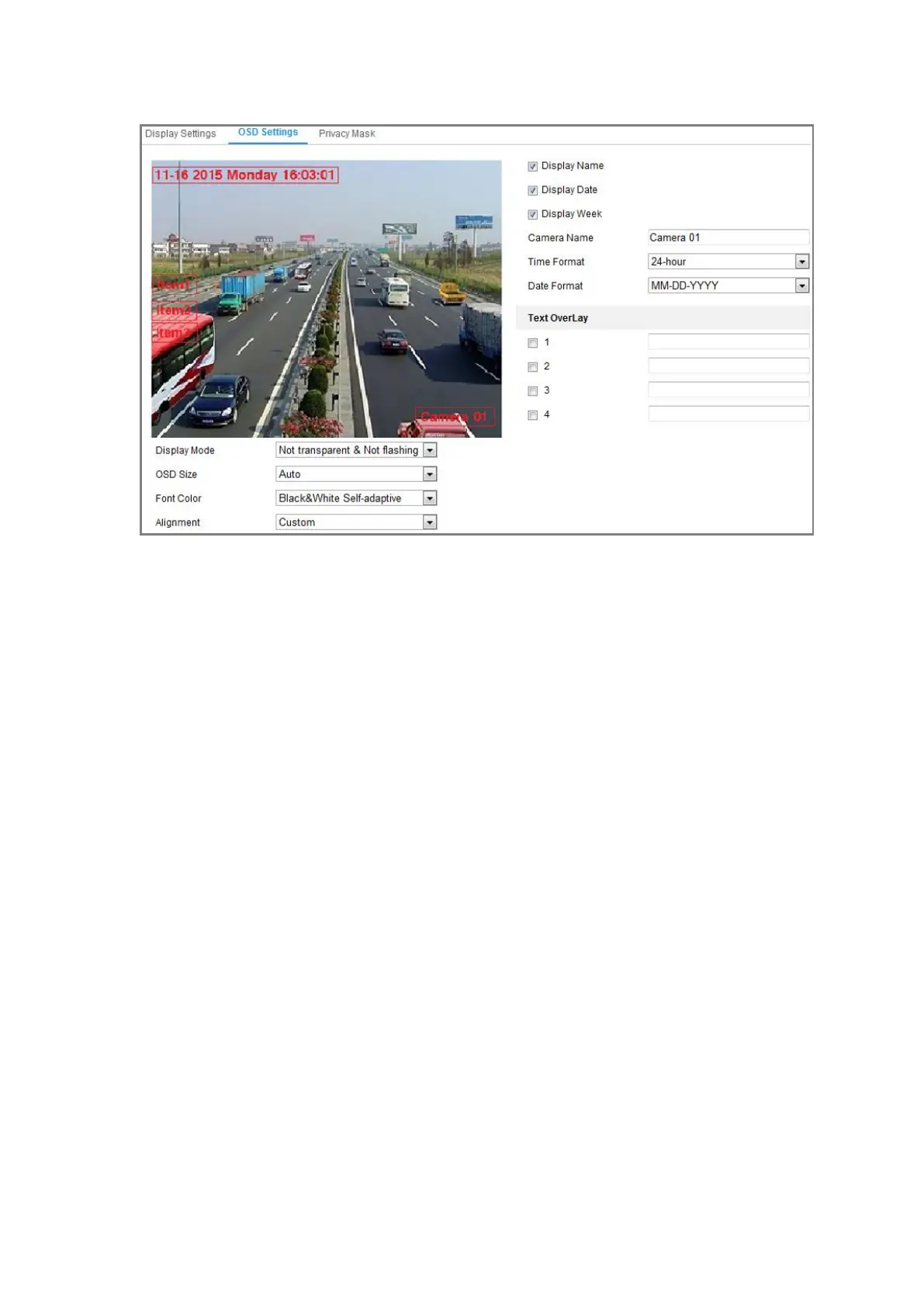 1. Enter the OSD Settings interface: Configuration > Image > OSD Settings.