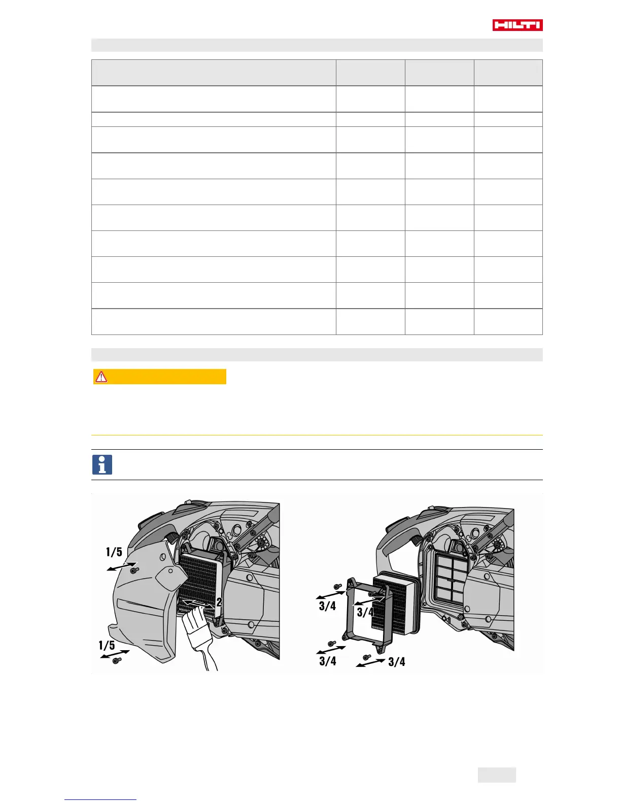 Hilti DSH 900 - Maintenance Schedule; Air Filter Service
