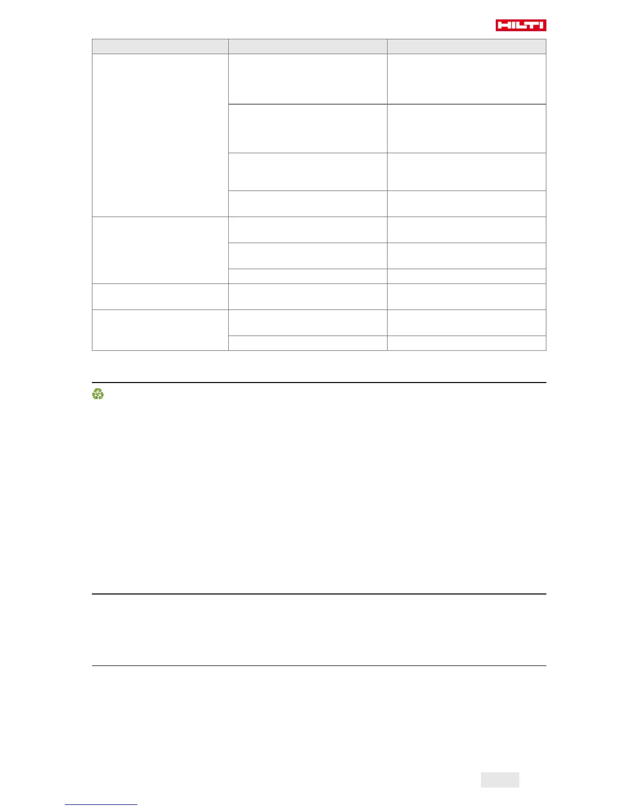 can be returned to Hilti for recycling. Ask Hilti Service or your Hilti representative for further information.