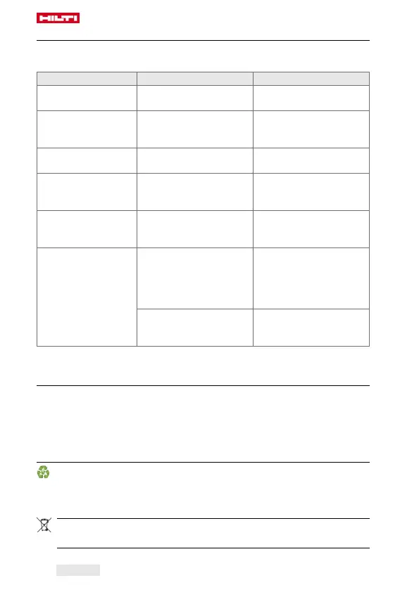 Kontakta Hilti-service om det uppstår ett fel som inte finns med i den här