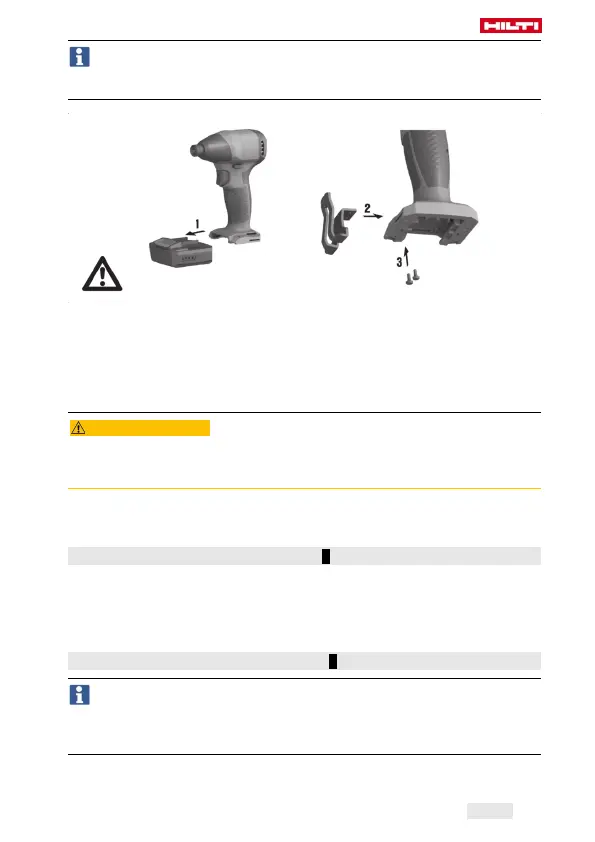 3. Ponownie zamocować zaczep do paska za pomocą 2 śrub.