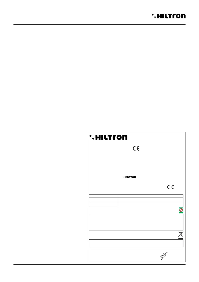 ! Per la manutenzione utilizzare esclusivamente parti originali della HILTRON Srl. Non eseguire alcuna rnodifica sui