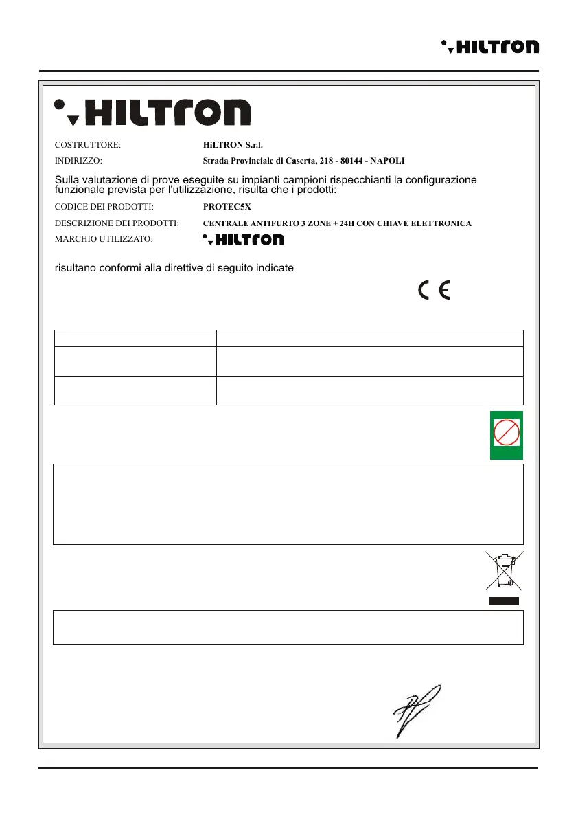 Hiltron security PROTEC5X - Elementi da Sostituire