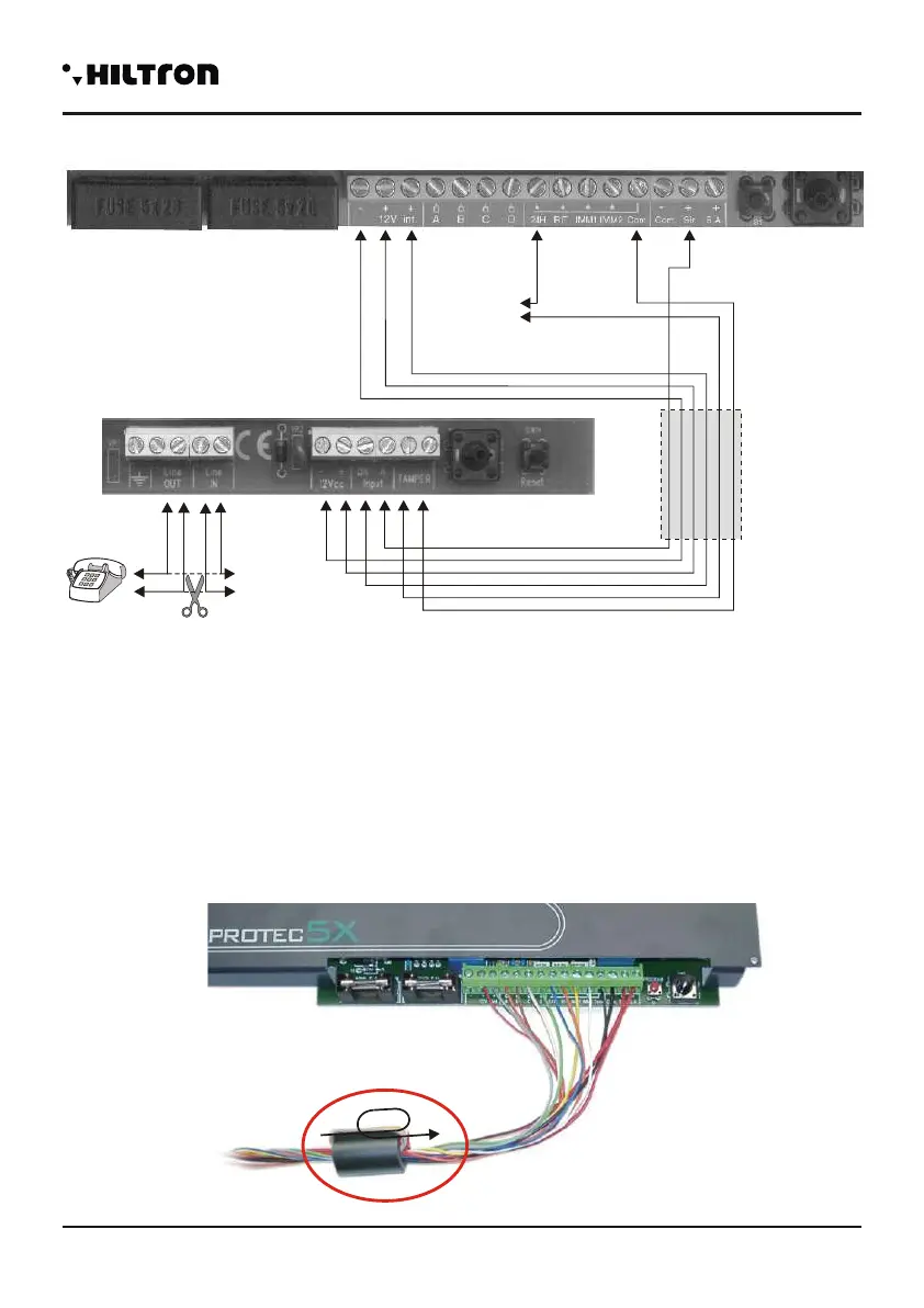 conexión utilizando una ferrita ( suministrada) para envolver todos los cables que