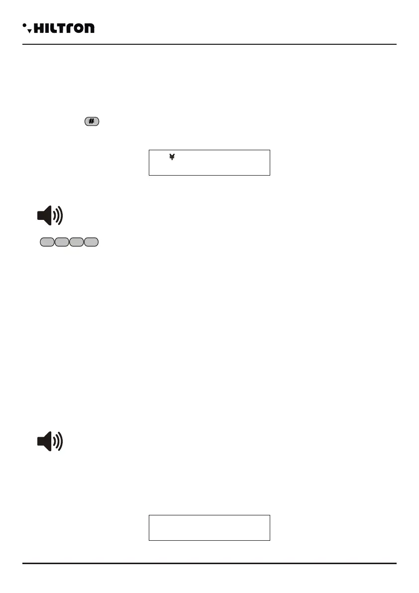 Send from the telephone the USER CODE with DTMF signals: