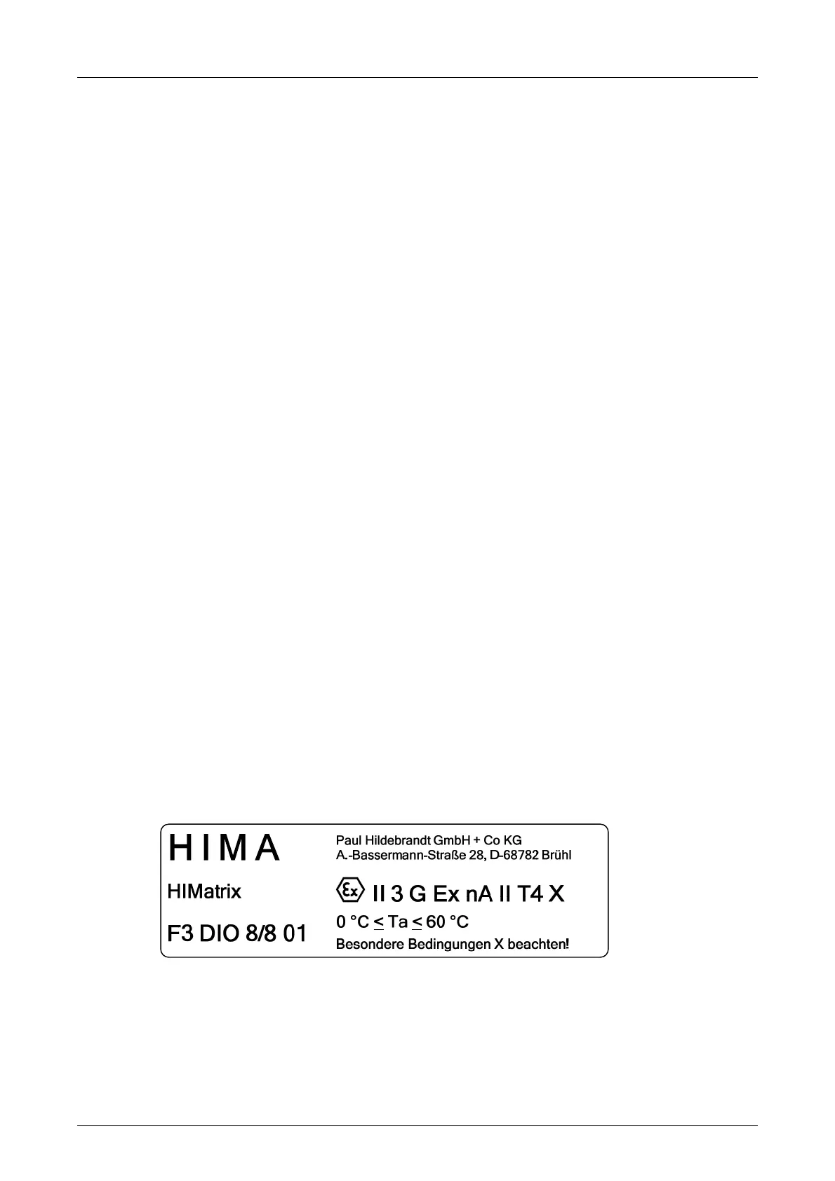 3. Protect the HIMatrix F3 DIO 8/8 01 with a 10 A time-lag fuse.